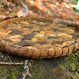 Merci les copines, pour les après-midis passés le long de la rivière à préparer la matière... Merci à Mai Hvid Jørgensen, vannière danoise, pour la transmission de la technique "mad weave", ce tressage triaxial d'écorces coupées en lanières, donnant un aspect géométrique marqué grâce aux croisements réguliers.